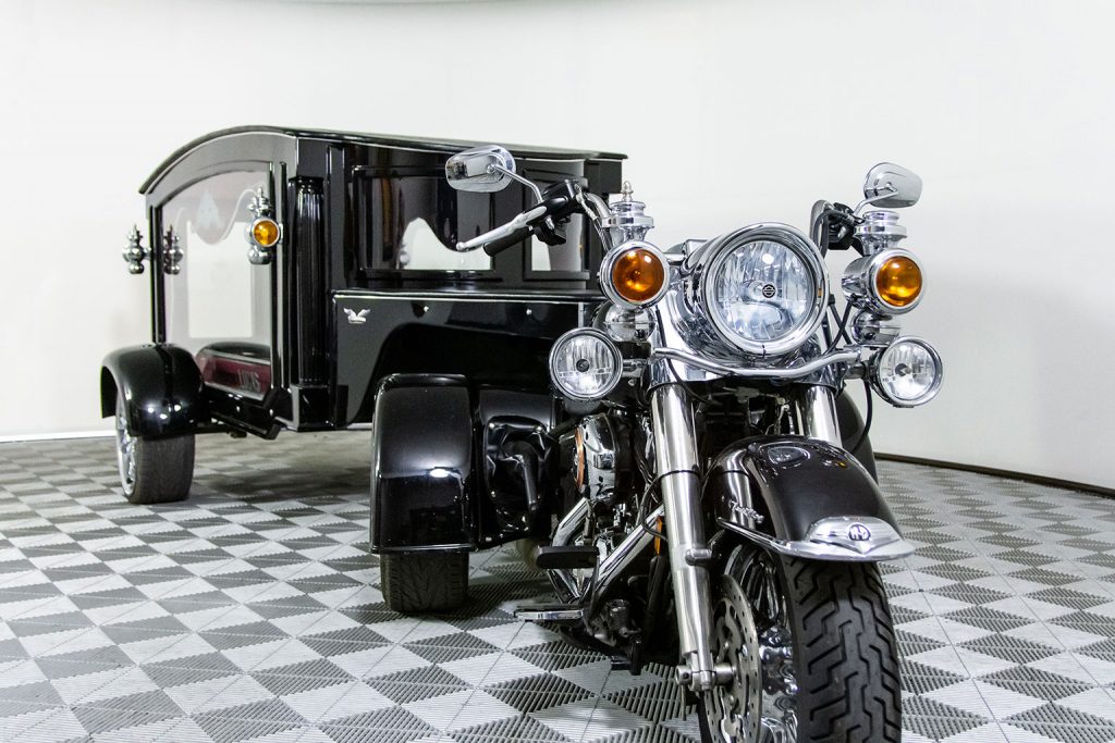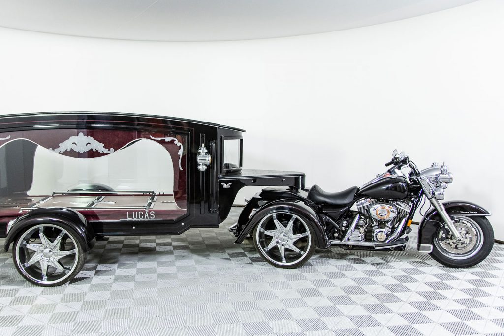 Last Ride DFW serves to offer Dallas Fort Worth area families a unique way to celebrate the life, and journey, of their loved one. Our motorcycle hearse is an Anniversary Edition Harley Davidson Road King trike with a custom 5th wheel Tombstone Hearse. The hearse can accommodate a casket or urn and would be a great choice for veterans, motorcycle enthusiasts, police and fire professionals, or anyone wanting a truly unforgettable Last Ride.
